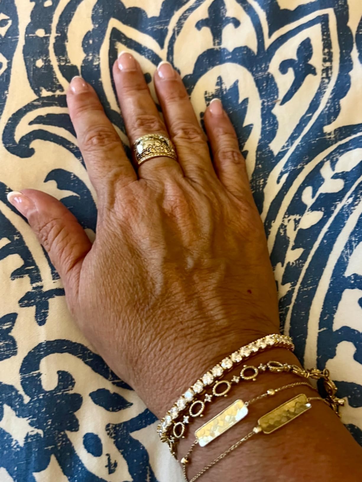Jewelry should be wiped down with a microfibre cloth and kept dry after use. If your climate is humid, place a small packet of desiccant crystals inside your storage area. Avoid storing your pieces in direct contact with rubber. Always remove your jewelry when applying any colognes, perfumes or other chemical products as well as before washing. Avoid chlorine, especially at elevated tempatures, as this may cause permeneant discoluariton of your gold jewelery.